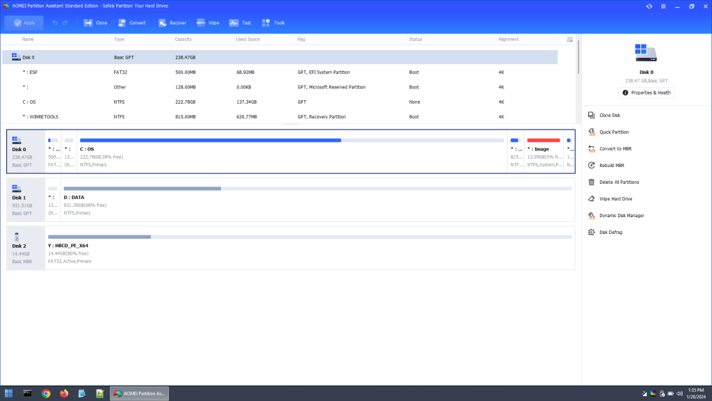 - Partition & Disk Management – Resize, create, delete, and repair partitions easily.